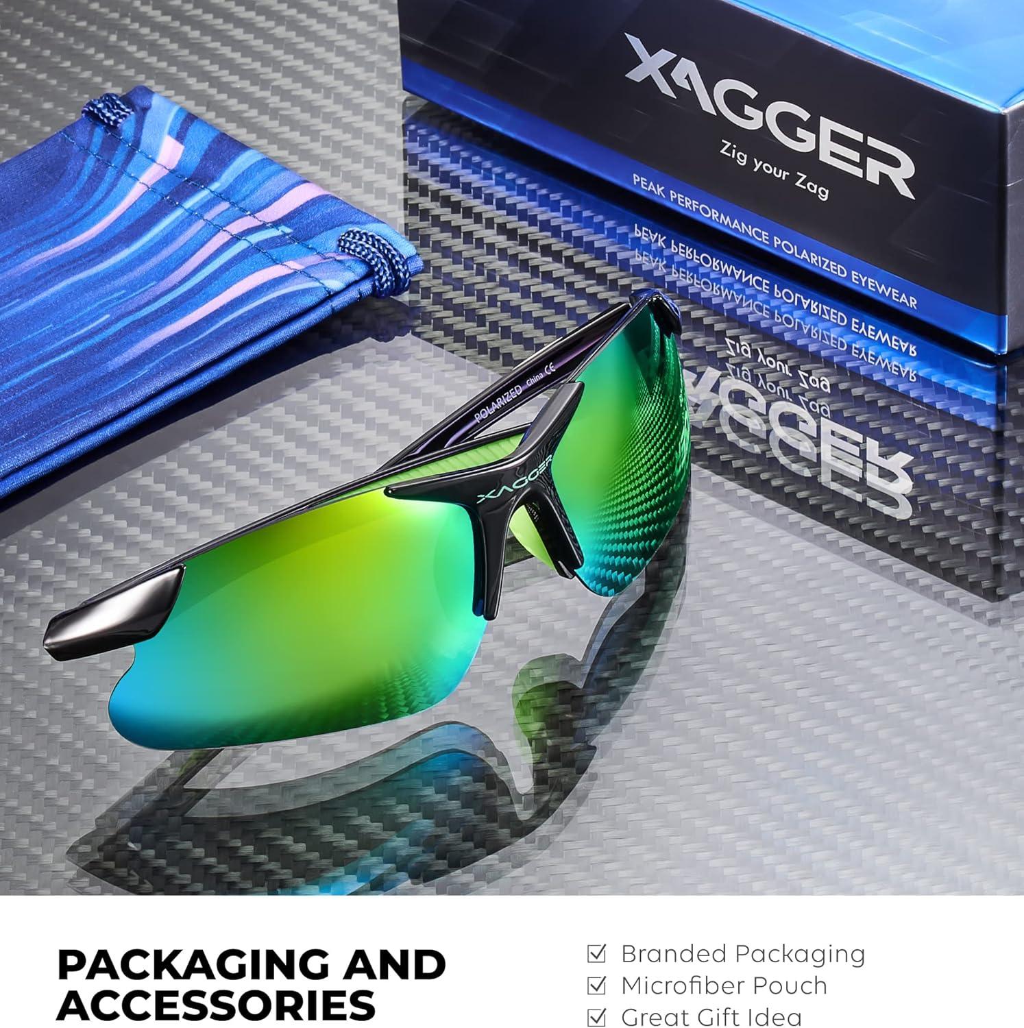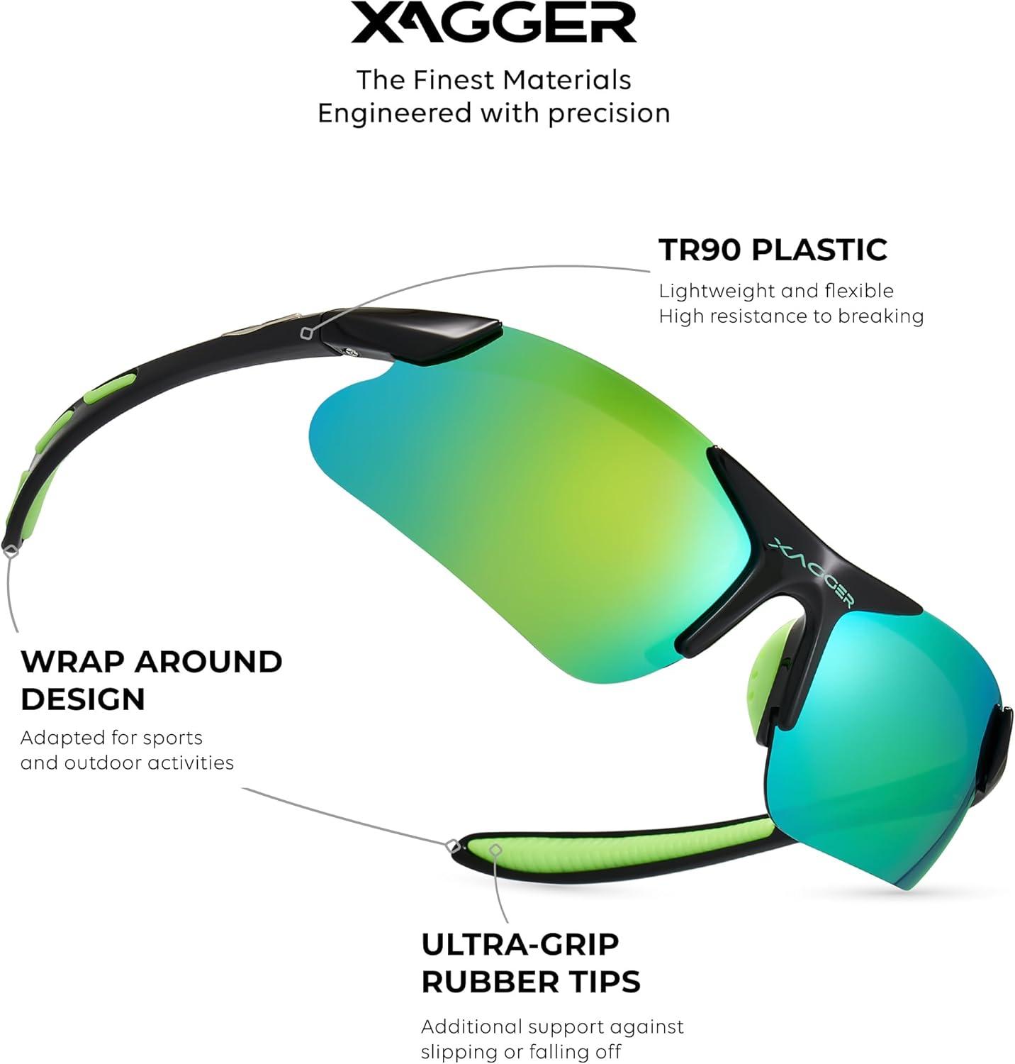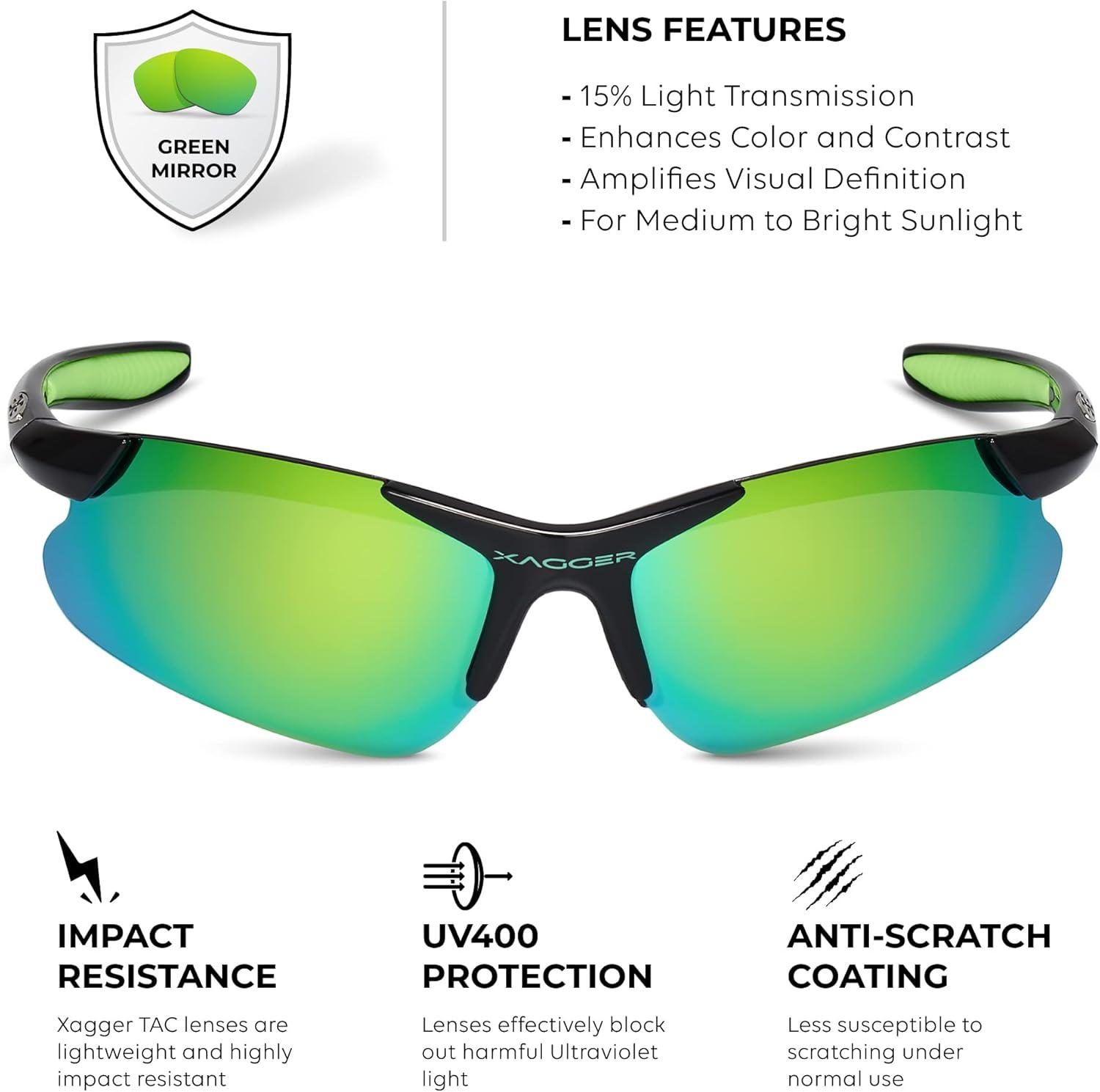 Xagger Kids Youth Polarized Sports Sunglasses for Boys Girls Baseball Softball Glasses TR90 Frame(Black | Green Mirror)