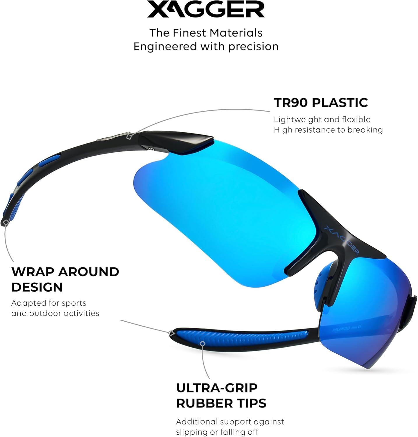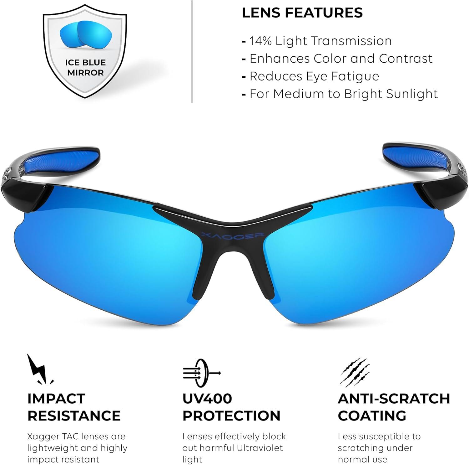 Xagger Kids Youth Polarized Sports Sunglasses for Boys Girls Baseball Softball Glasses TR90 Frame(Black | Ice Blue Mirror)