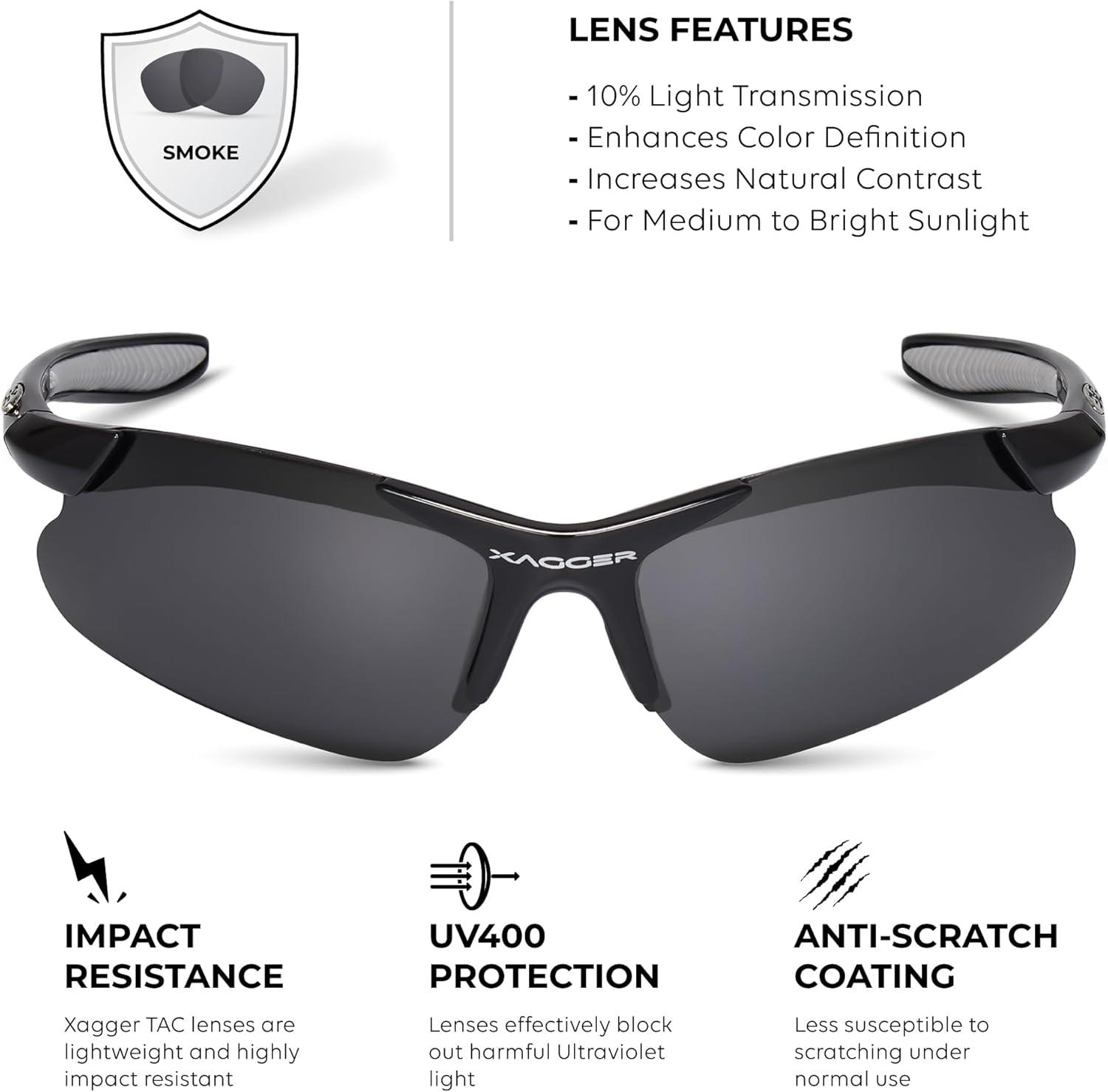 Xagger Kids Youth Polarized Sports Sunglasses for Boys Girls Baseball Softball Glasses TR90 Frame(Black | Smoke)