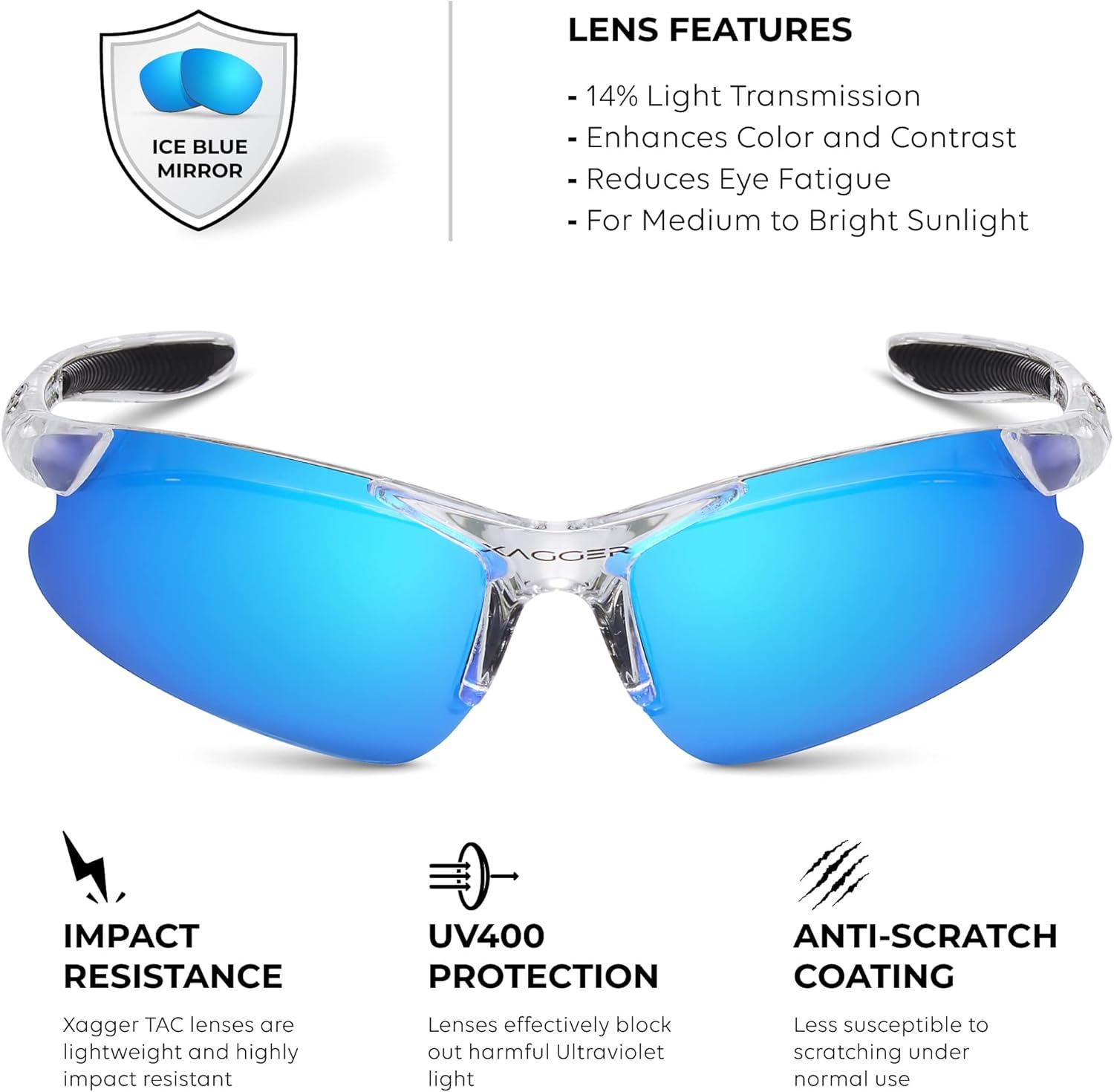 Xagger Kids Youth Polarized Sports Sunglasses for Boys Girls Baseball Softball Glasses TR90 Frame(Clear | Ice Blue Mirror)