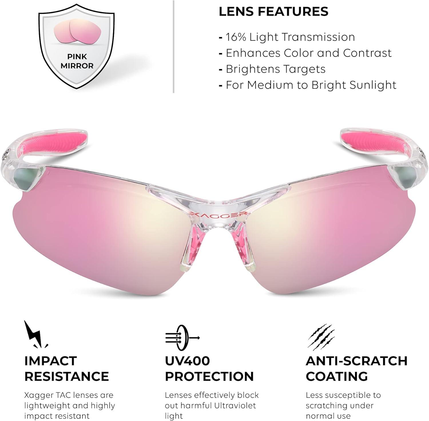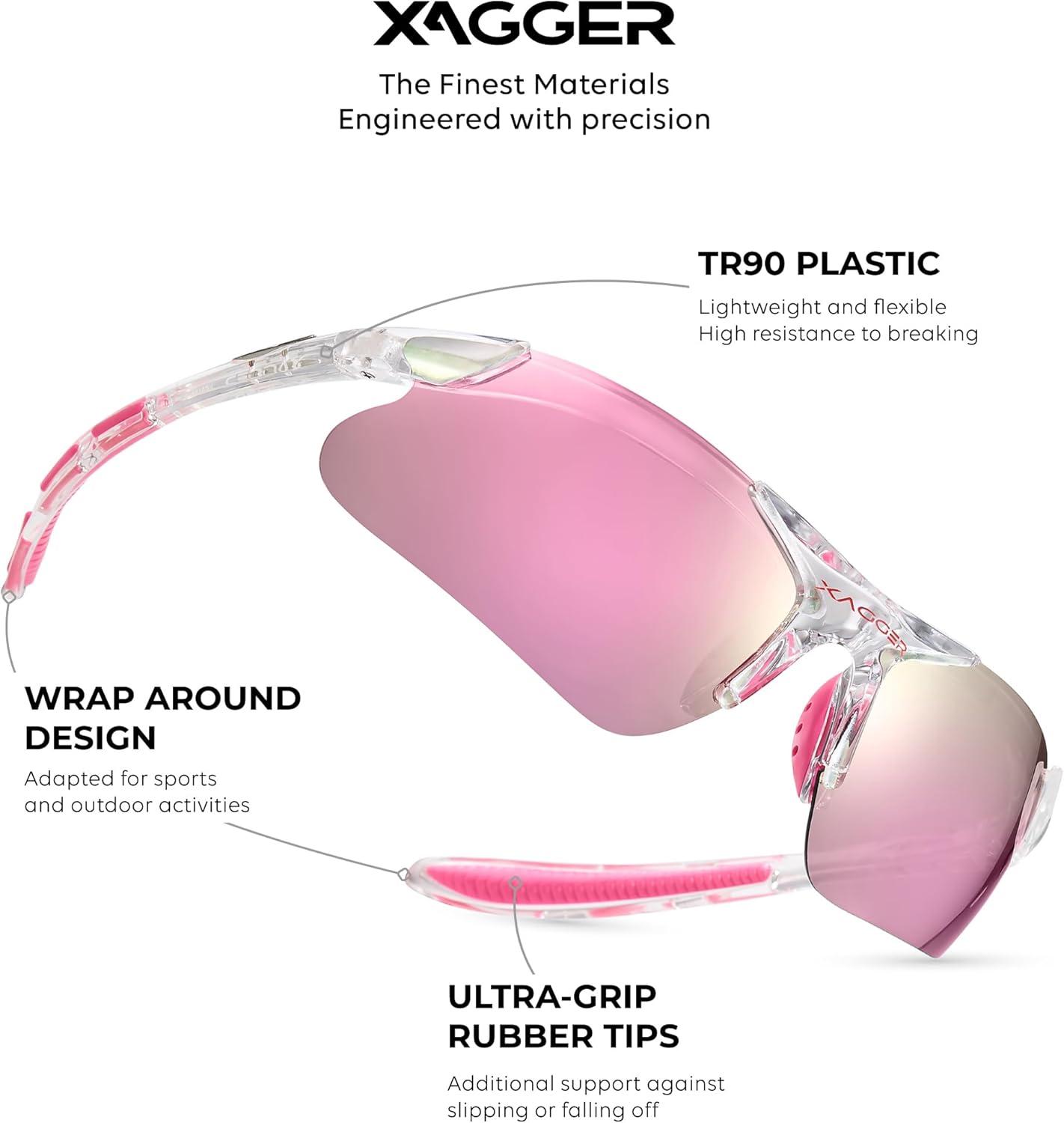 Xagger Kids Youth Polarized Sports Sunglasses for Boys Girls Baseball Softball Glasses TR90 Frame(Clear | Pink Mirror)