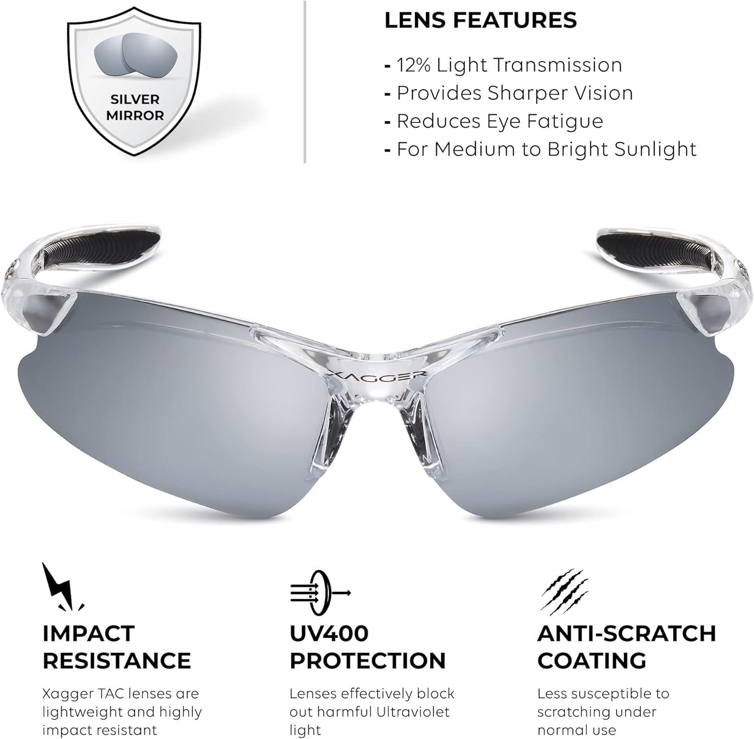 Xagger Kids Youth Polarized Sports Sunglasses for Boys Girls Baseball Softball Glasses TR90 Frame(Clear | Silver Mirror)