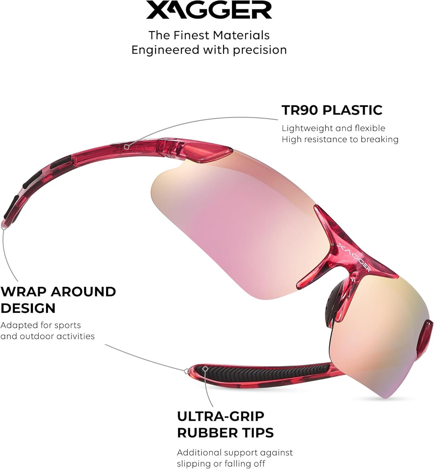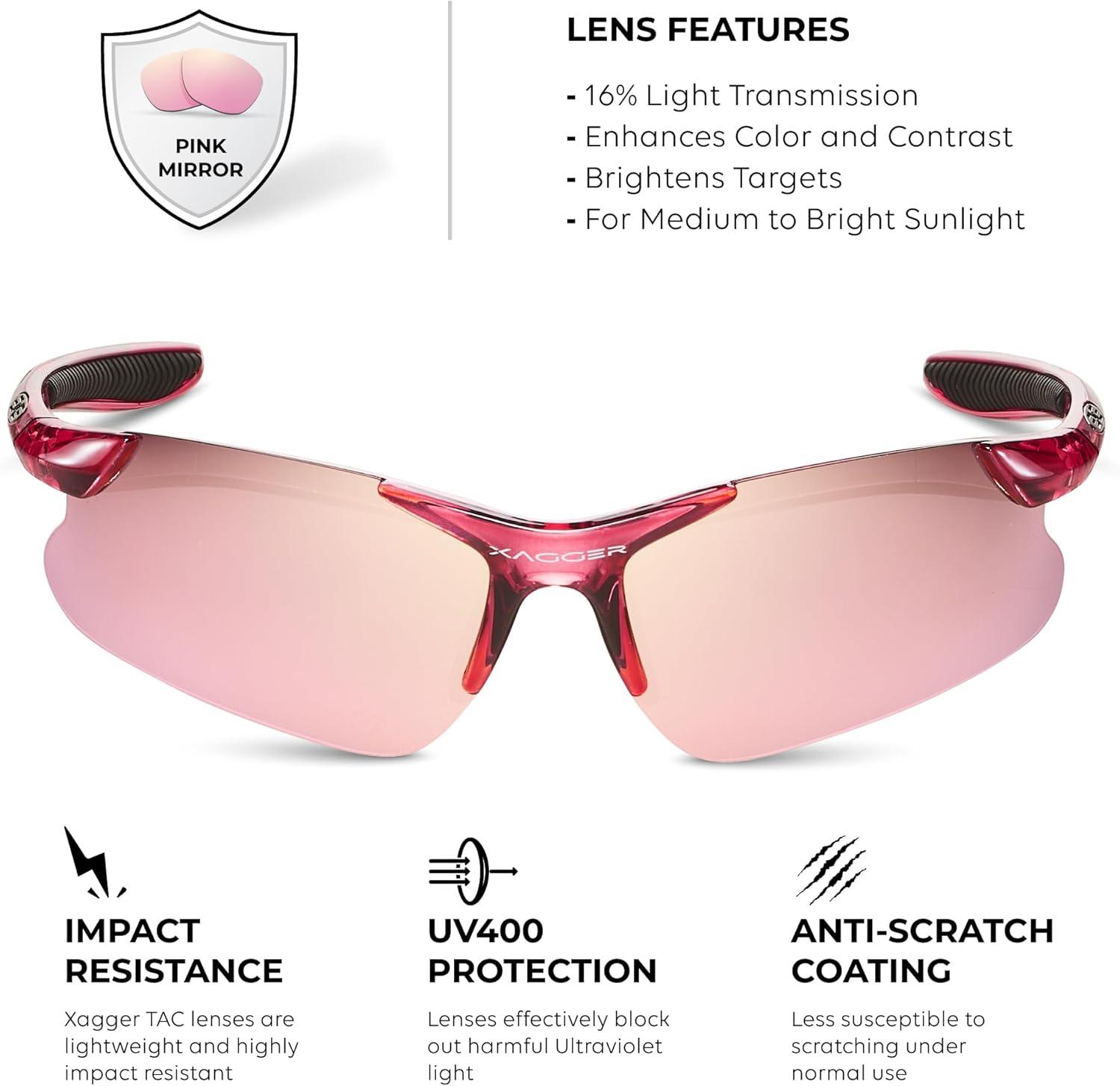 Xagger Kids Youth Polarized Sports Sunglasses for Boys Girls Baseball Softball Glasses TR90 Frame(Hot Pink | Pink Mirror)