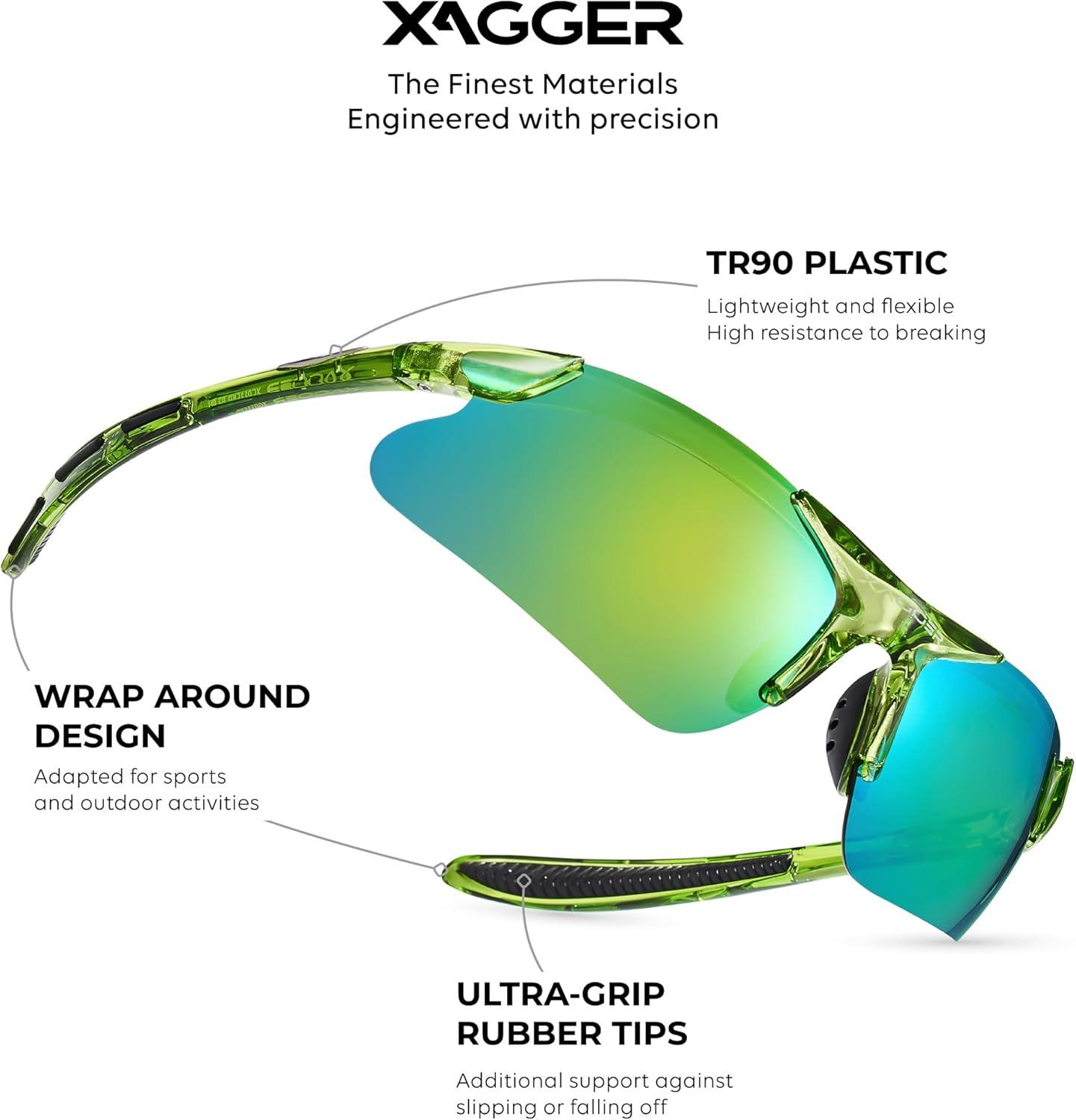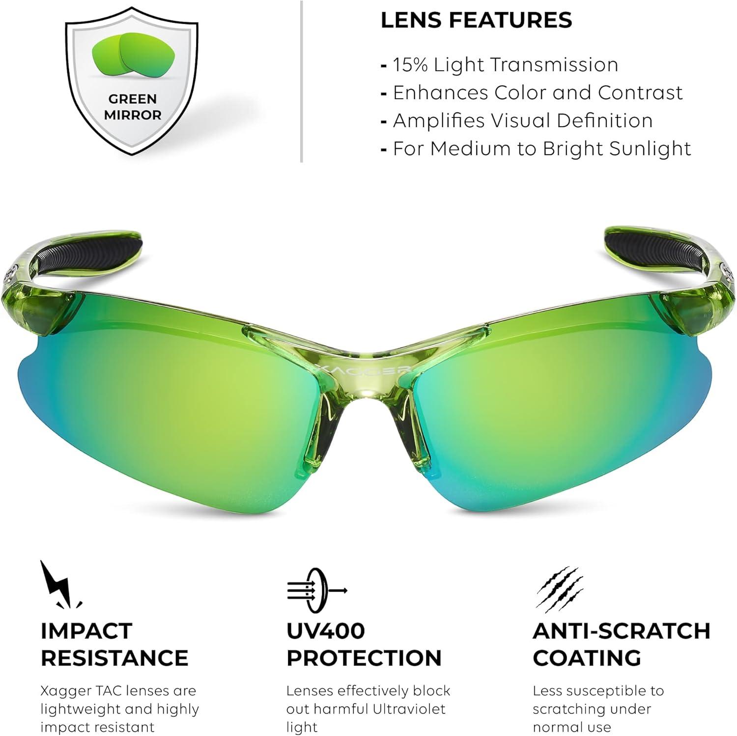 Xagger Kids Youth Polarized Sports Sunglasses for Boys Girls Baseball Softball Glasses TR90 Frame(Lime | Green Mirror)
