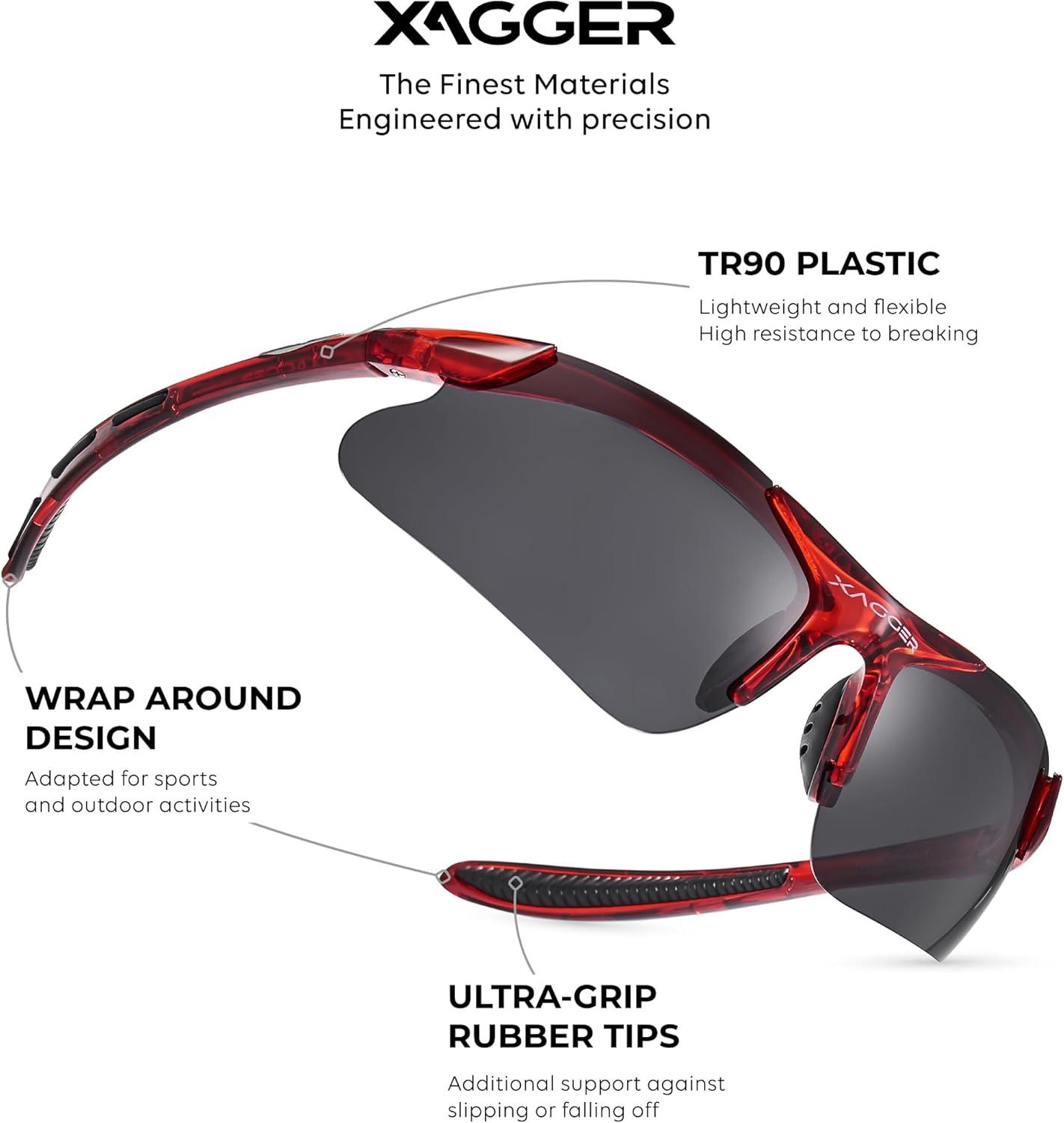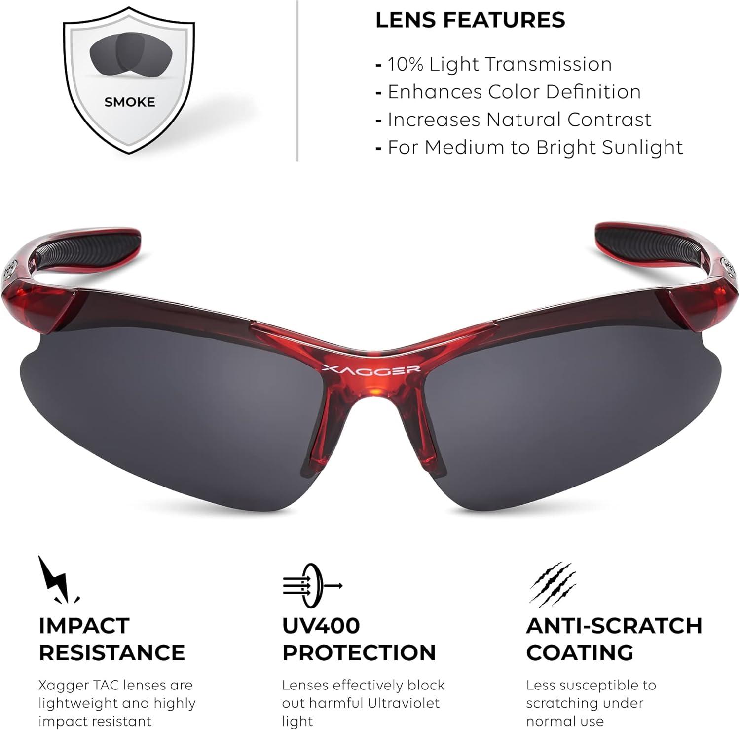 Xagger Kids Youth Polarized Sports Sunglasses for Boys Girls Baseball Softball Glasses TR90 Frame(Red | Smoke)