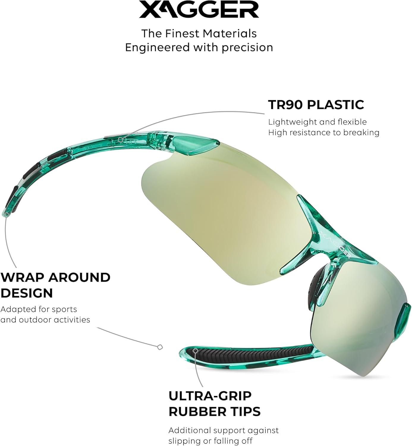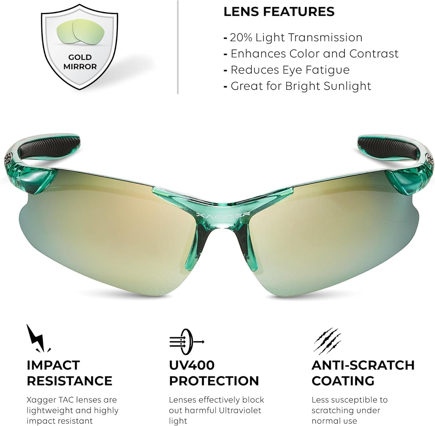 Xagger Kids Youth Polarized Sports Sunglasses for Boys Girls Baseball Softball Glasses TR90 Frame(Teal | Gold Mirror)