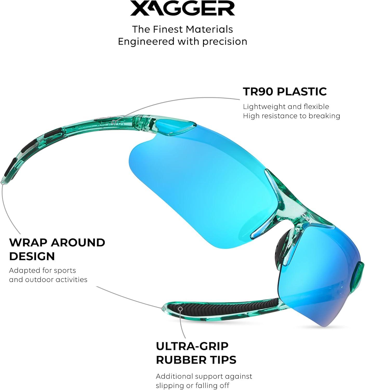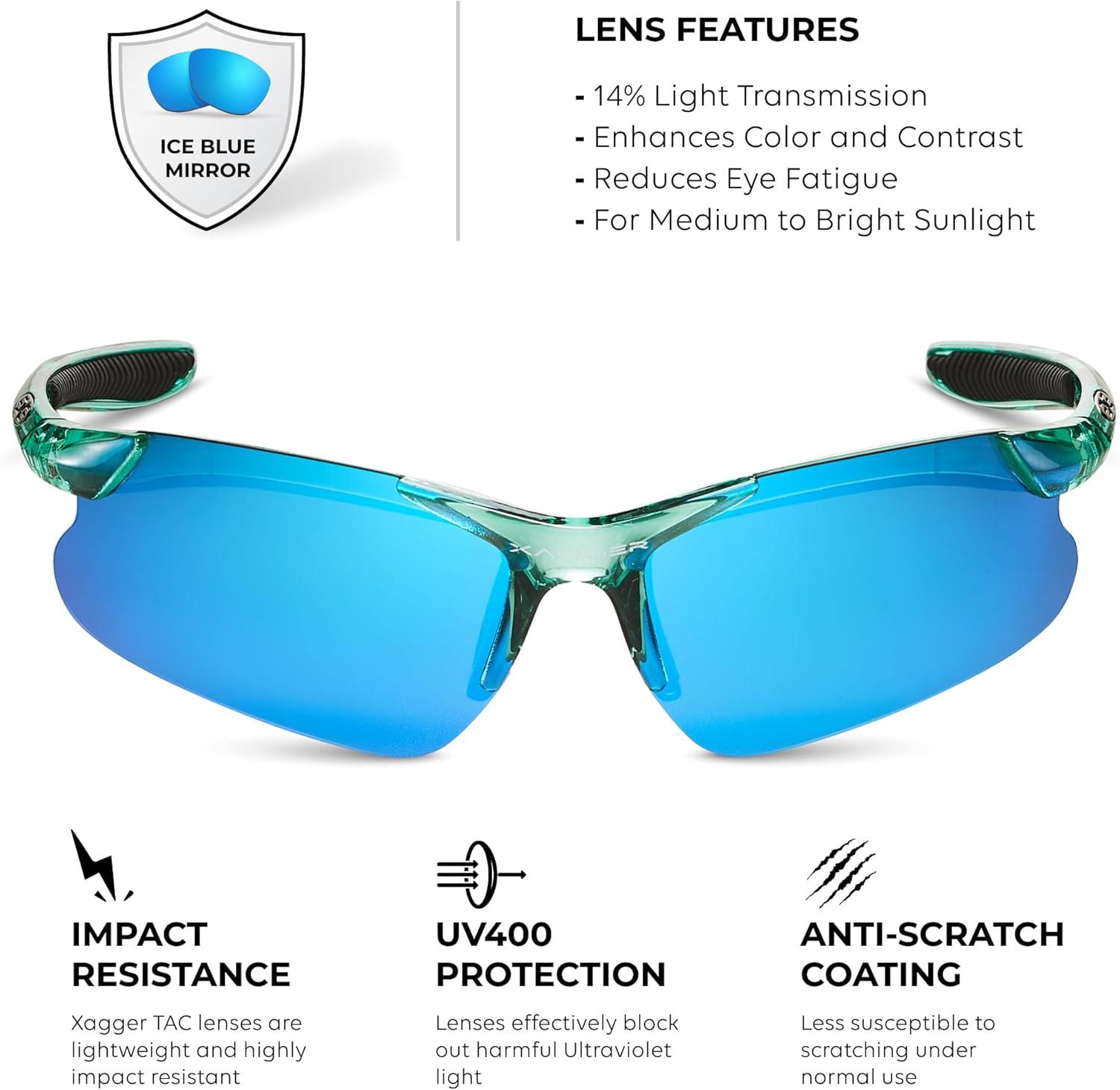 Xagger Kids Youth Polarized Sports Sunglasses for Boys Girls Baseball Softball Glasses TR90 Frame(Teal | Ice Blue Mirror)