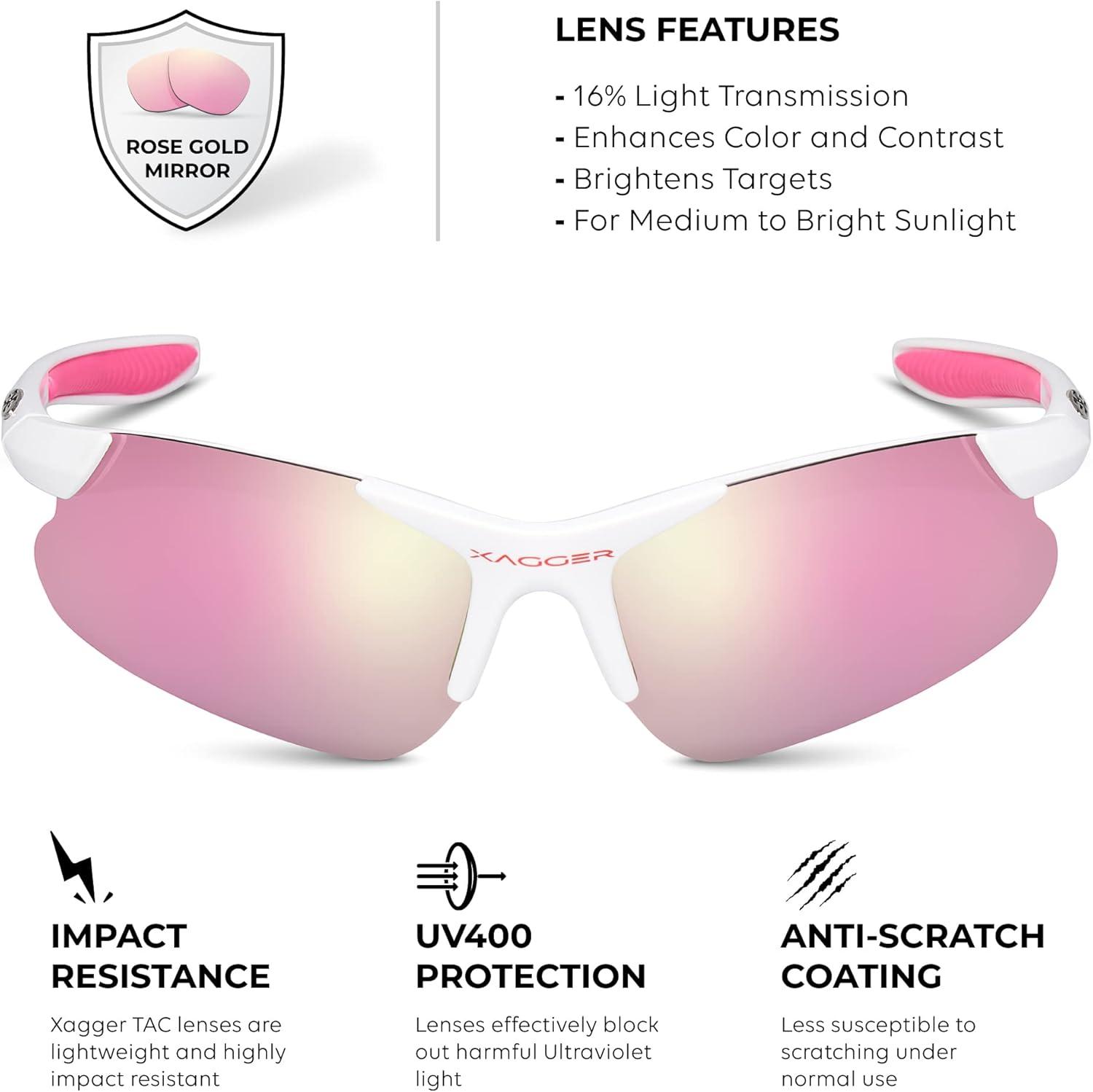 Xagger Kids Youth Polarized Sports Sunglasses for Boys Girls Baseball Softball Glasses TR90 Frame(White | Rose Gold Mirror)