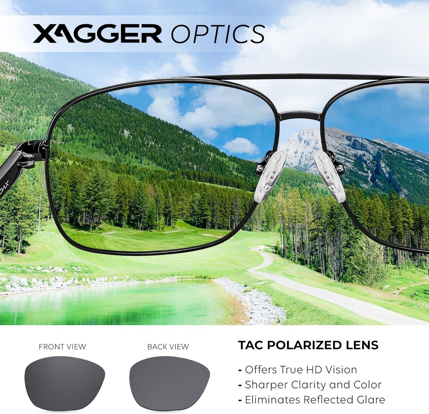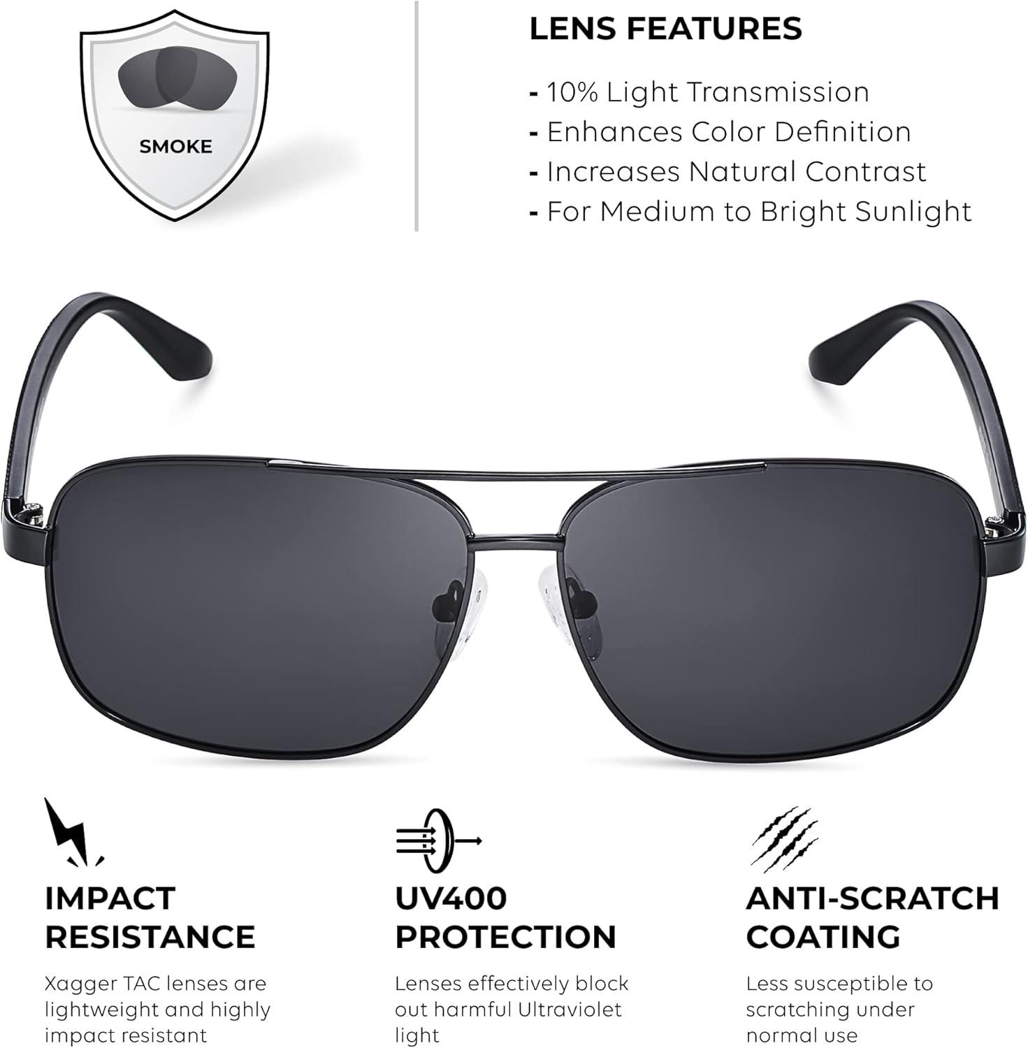 Xagger Polarized Brow Bar Square Aviator Sunglasses for Men Retro Pilot Military Style Driving Shades UV400(Black | Smoke)