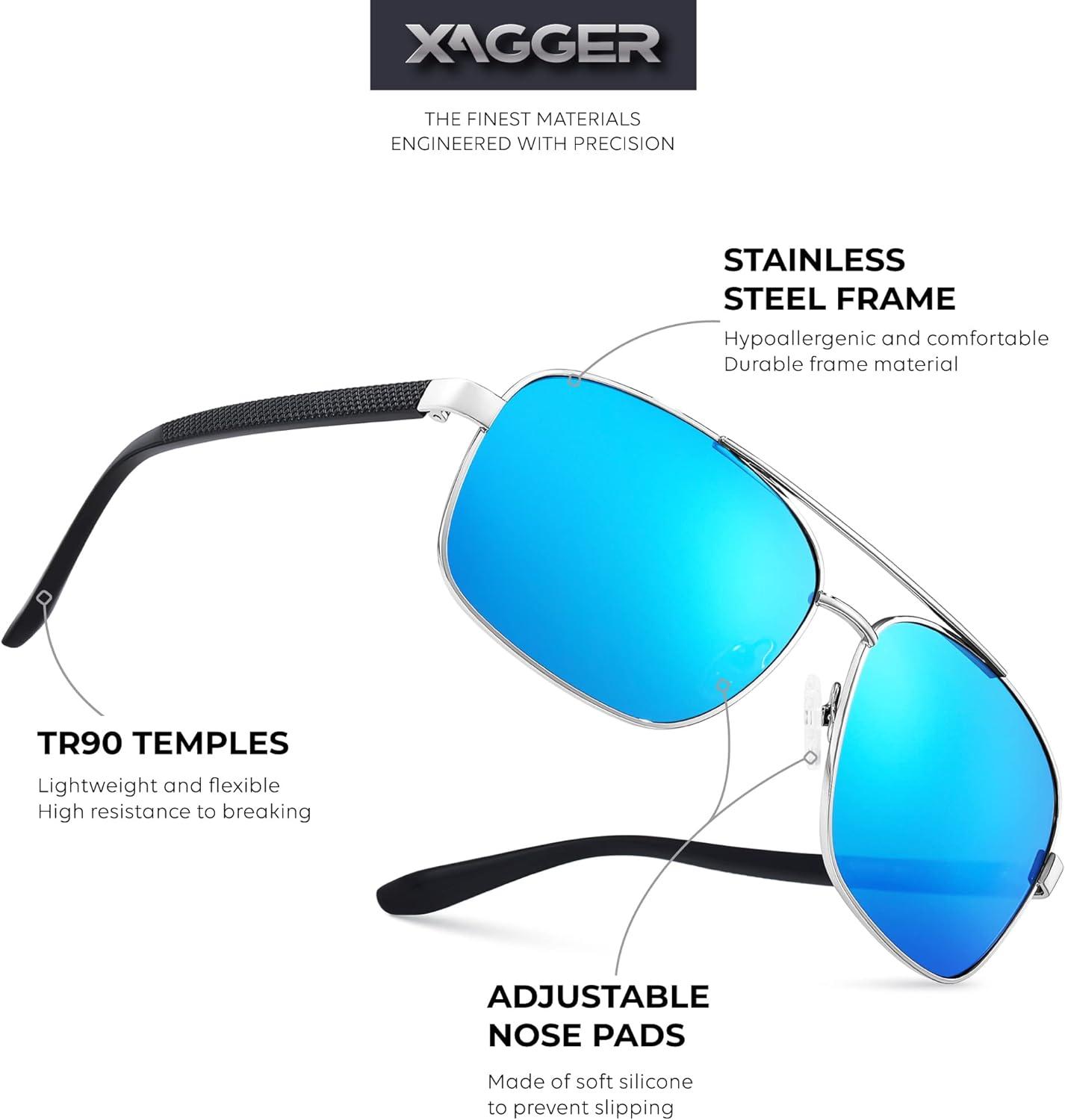 Be the first to review “Xagger Polarized Brow Bar Square Aviator Sunglasses for Men Retro Pilot Military Style Driving Shades UV400(Silver – Black Temples | Ice Blue Mirror)” Cancel reply
