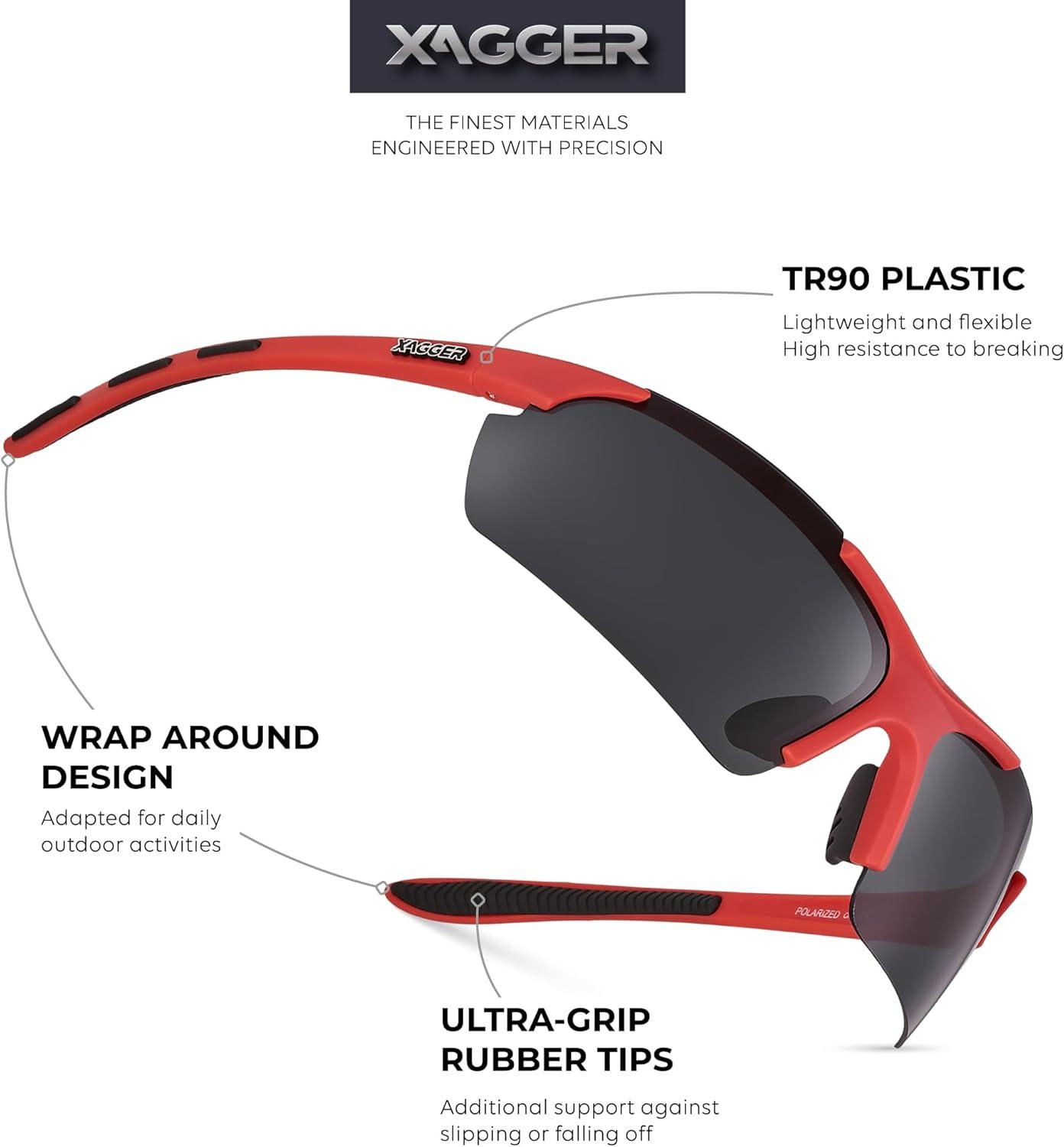 Xagger Polarized Sports Sunglasses for Men Women Wrap Around UV400 Running Baseball Softball Cycling Driving Glasses(Rubberized Red | Smoke)
