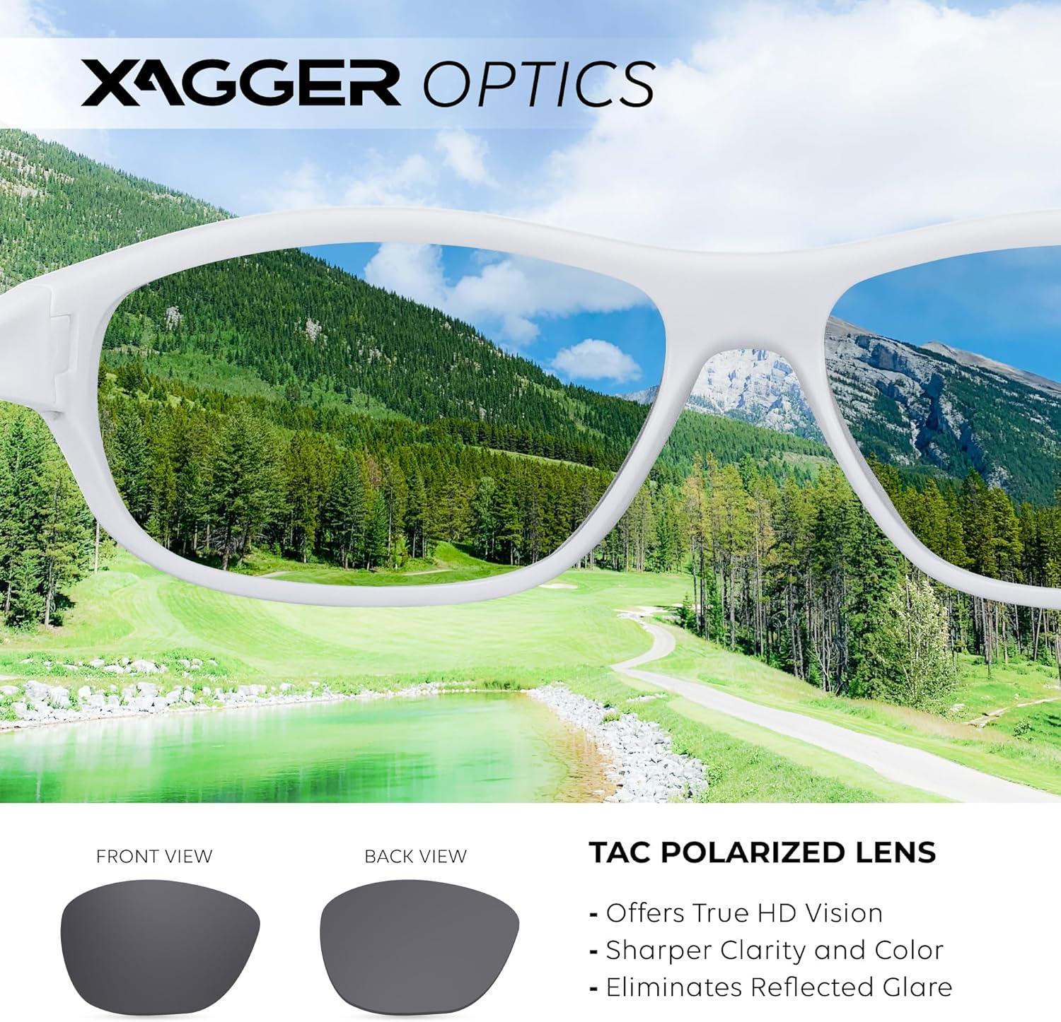 Xagger Polarized Wrap Around Sport Sunglasses for Men Women Running Driving Fishing TR90 Frame(White | Smoke)
