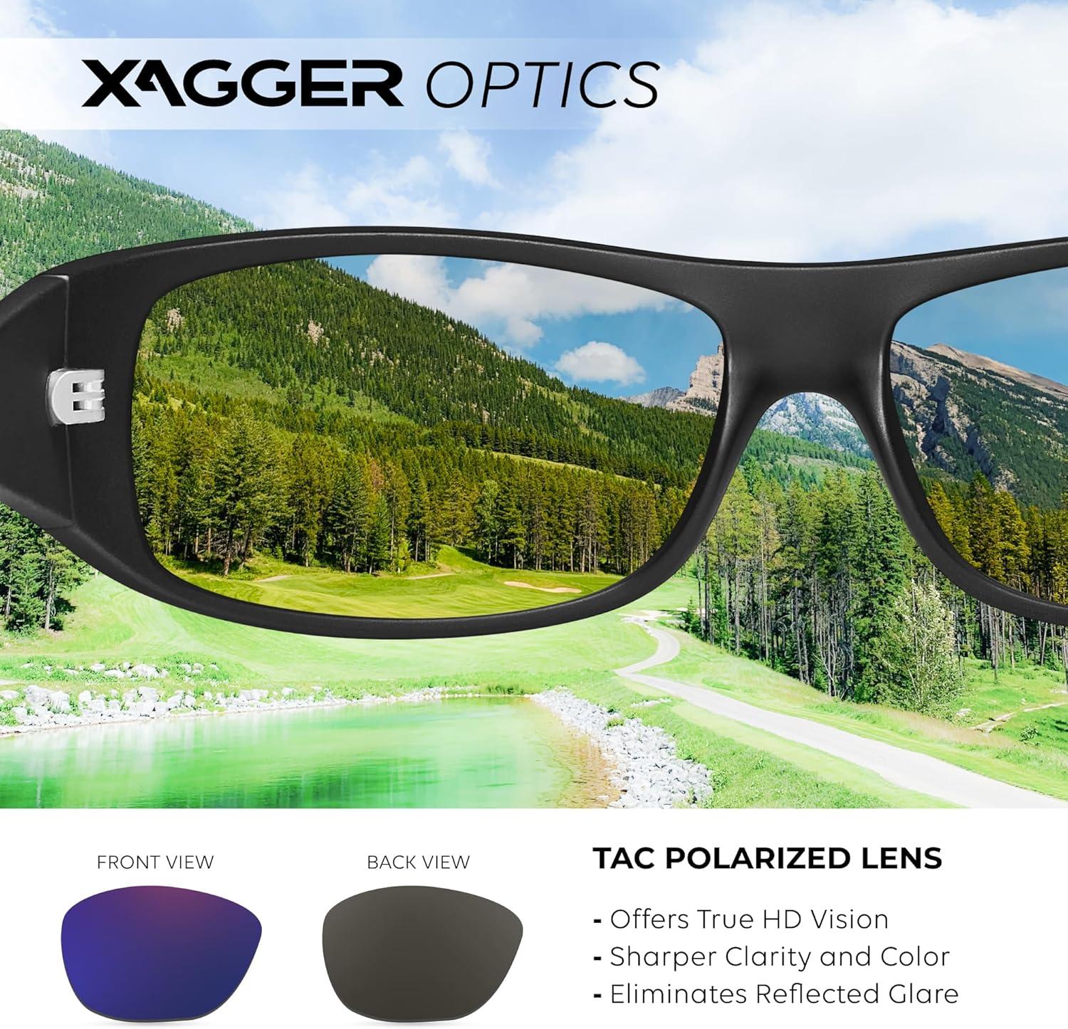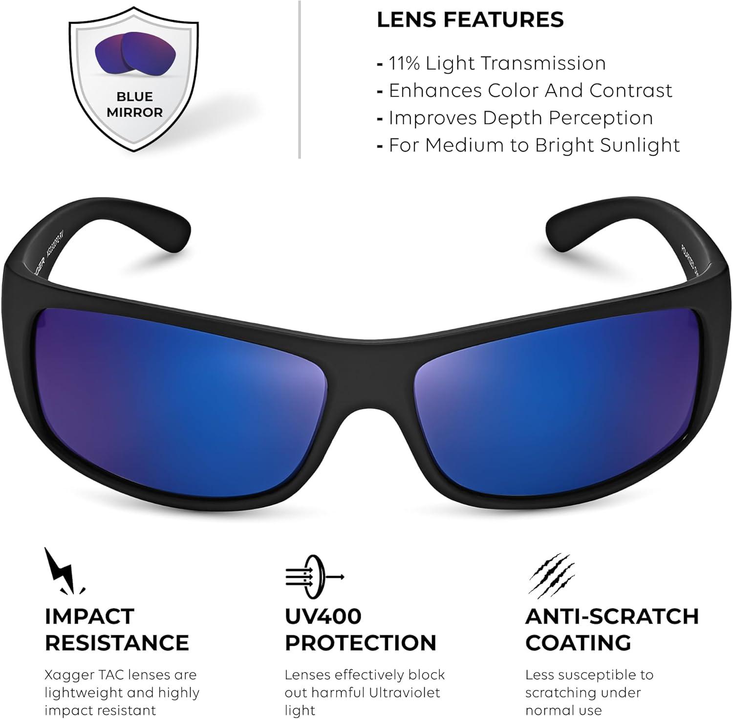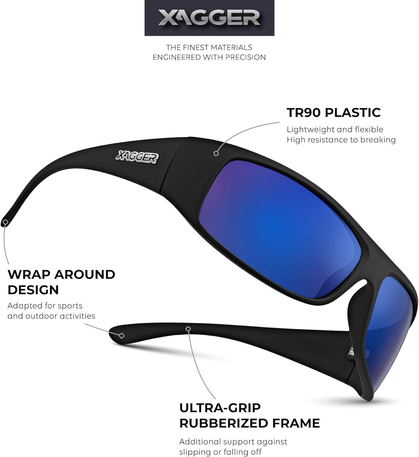 Xagger Sports Polarized Sunglasses for Men Wrap Around TR90 Frame Sun Glasses(Matte Black | Blue Mirror)
