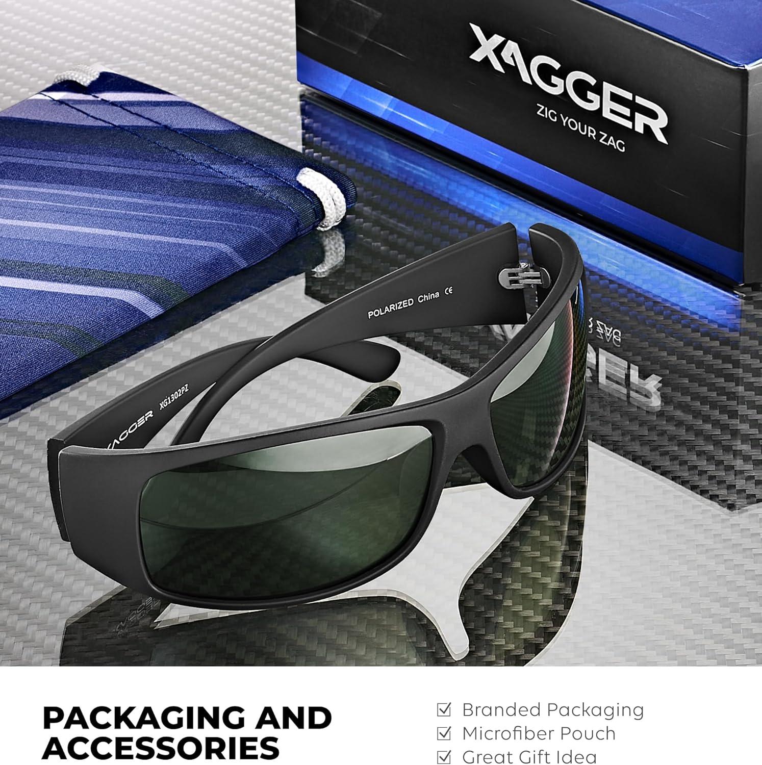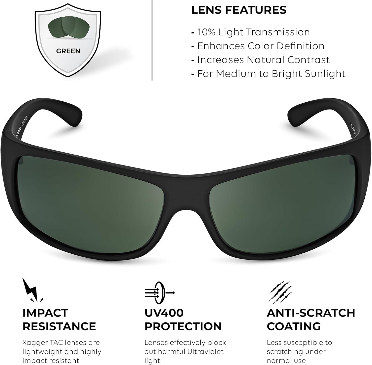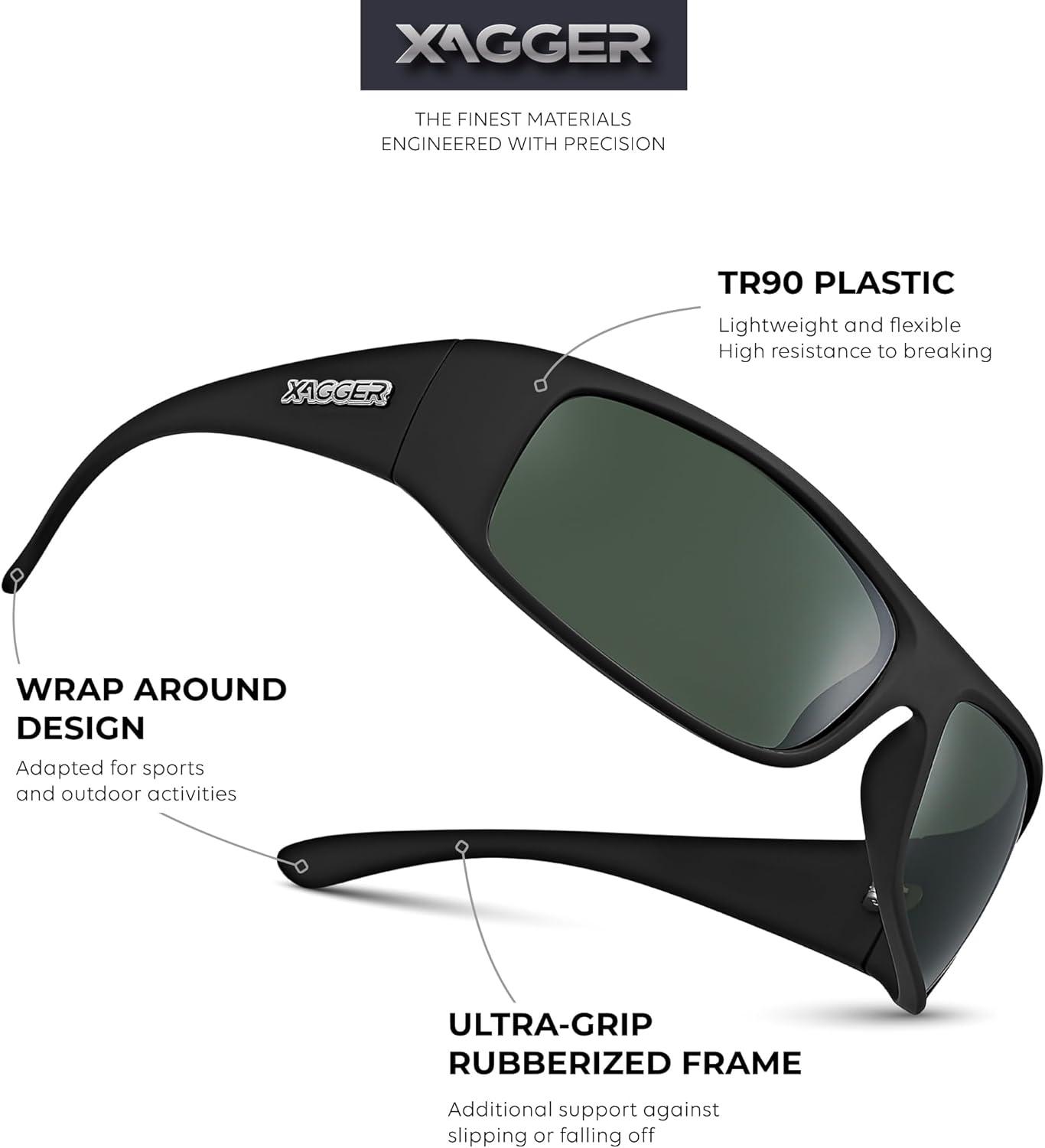 Xagger Sports Polarized Sunglasses for Men Wrap Around TR90 Frame Sun Glasses(Matte Black | Green)